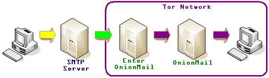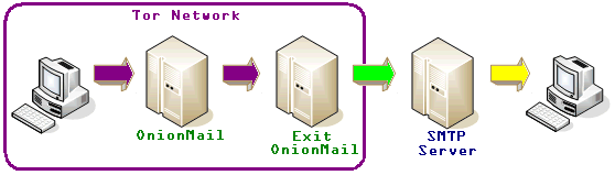 OnionMail through the exit/enter nodes forwards messages between networks TOR and internet in a transparent manner.